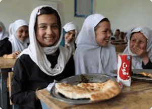 In photo: Girls in rural Afghanistan receive books from HADIA's mobile library